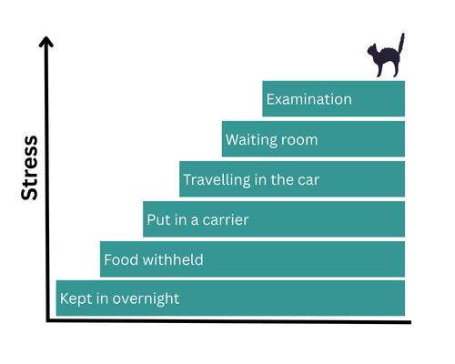 Stress points for cats can begin long before their visit to the consultation room. From bring kept indoors over night to a trip to in the car, these stressors can be cumulative, increasing their stress level by the time they reach the veterinary surgeon. While some stressors are unavoidable due to necessity or practicality, there are steps we can take to lessen the impact for cats.
